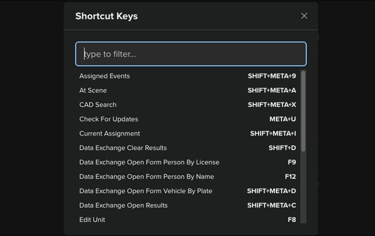 Shortcut Keys Menu