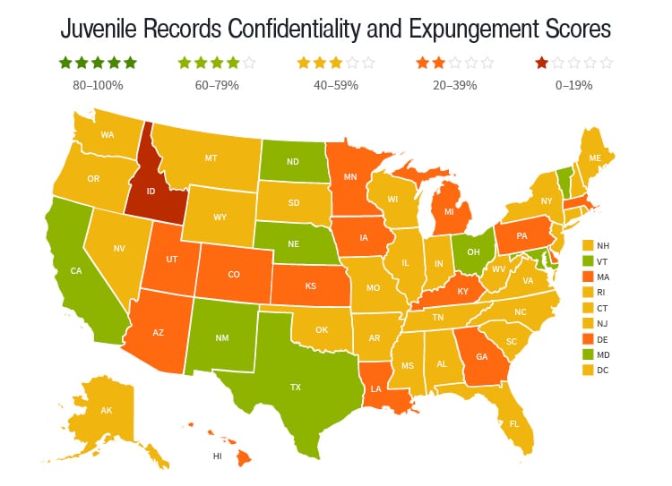According to the report, no state received a perfect score and over 80% of states received 3 or fewer stars, meaning that they only met 40–59% of the best practices for handling these records. These ill-handled records may leave marks on a juvenile’s records that follow them throughout their entire life (Read more about the study and dig into each state’s score).