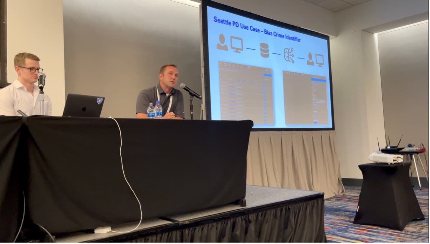 Seattle PD’s Capt. Britt and Mark43’s Director of Product, RMS Daniel Shoch presenting on Seattle’s Bias Crime Identifier