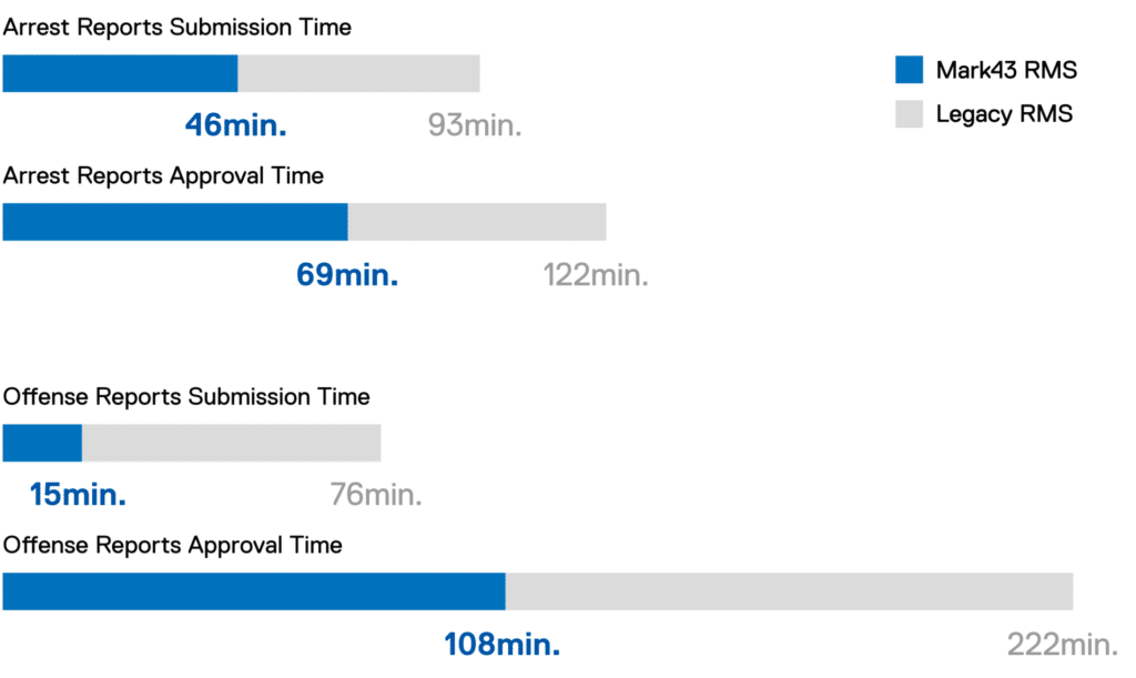 Mark43 RMS launched at MPD and 40+ other D.C. agencies in August 2015. From early system development to post-launch operations, Mark43 RMS outperformed MPD’s legacy system in the following ways: